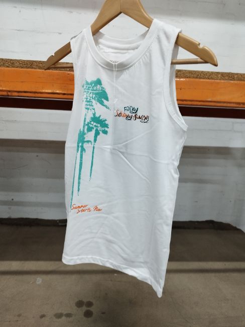 199 x Boys Printed Vest Top _ TCB-36 - White (43 x 8Y, 50 x 10Y, 76 x 12Y, 30 x 14Y)